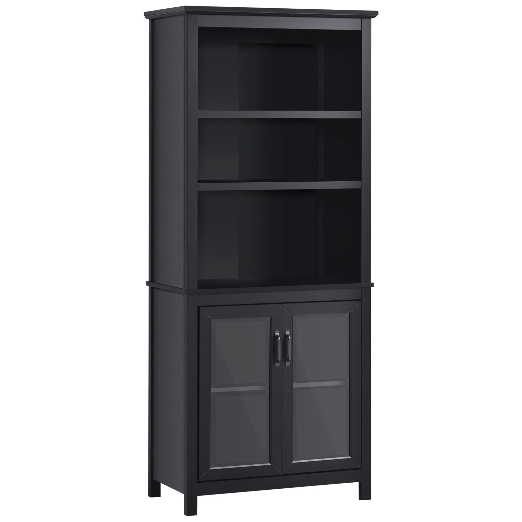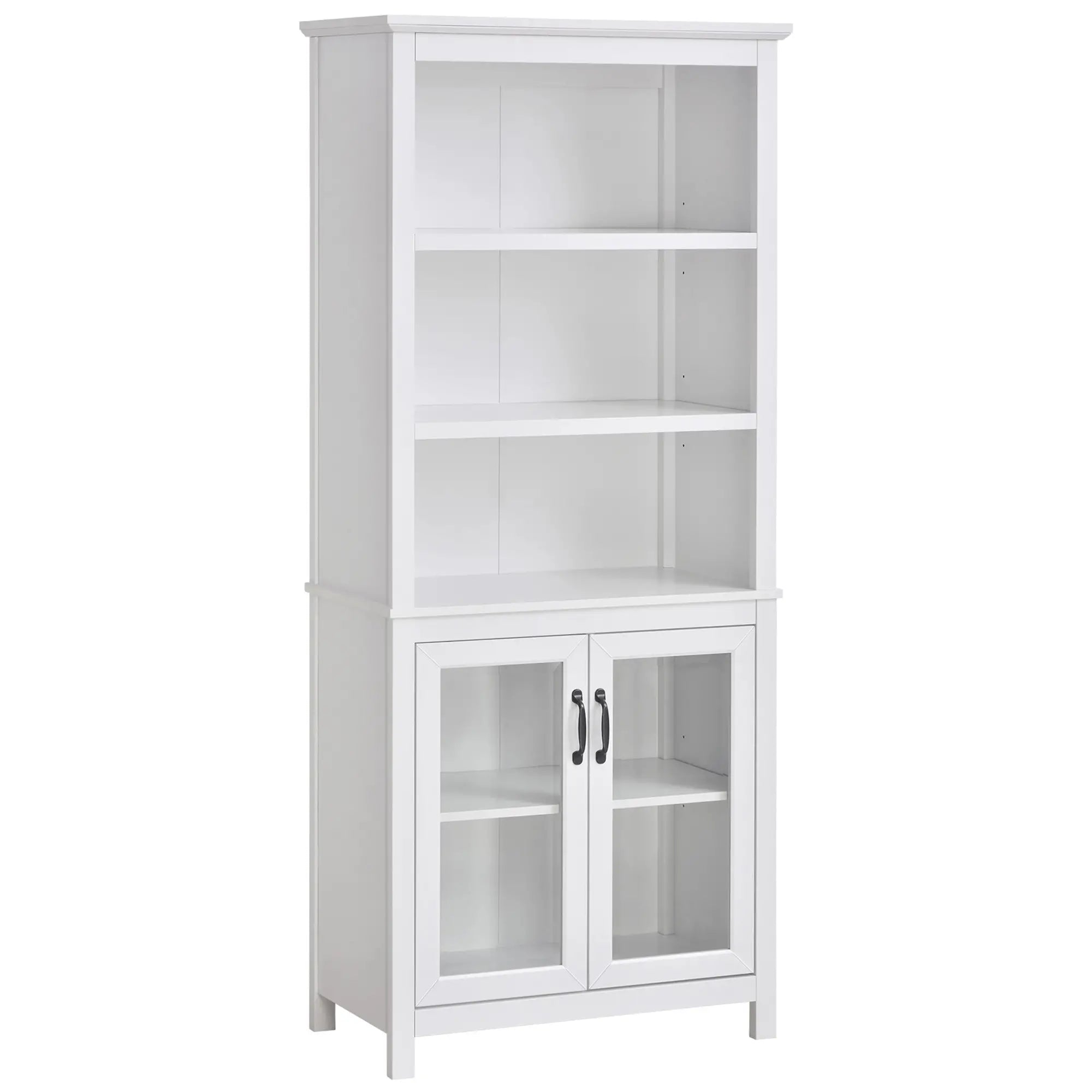 Classic Farmhouse Bookshelf and Cabinet with Glass Doors