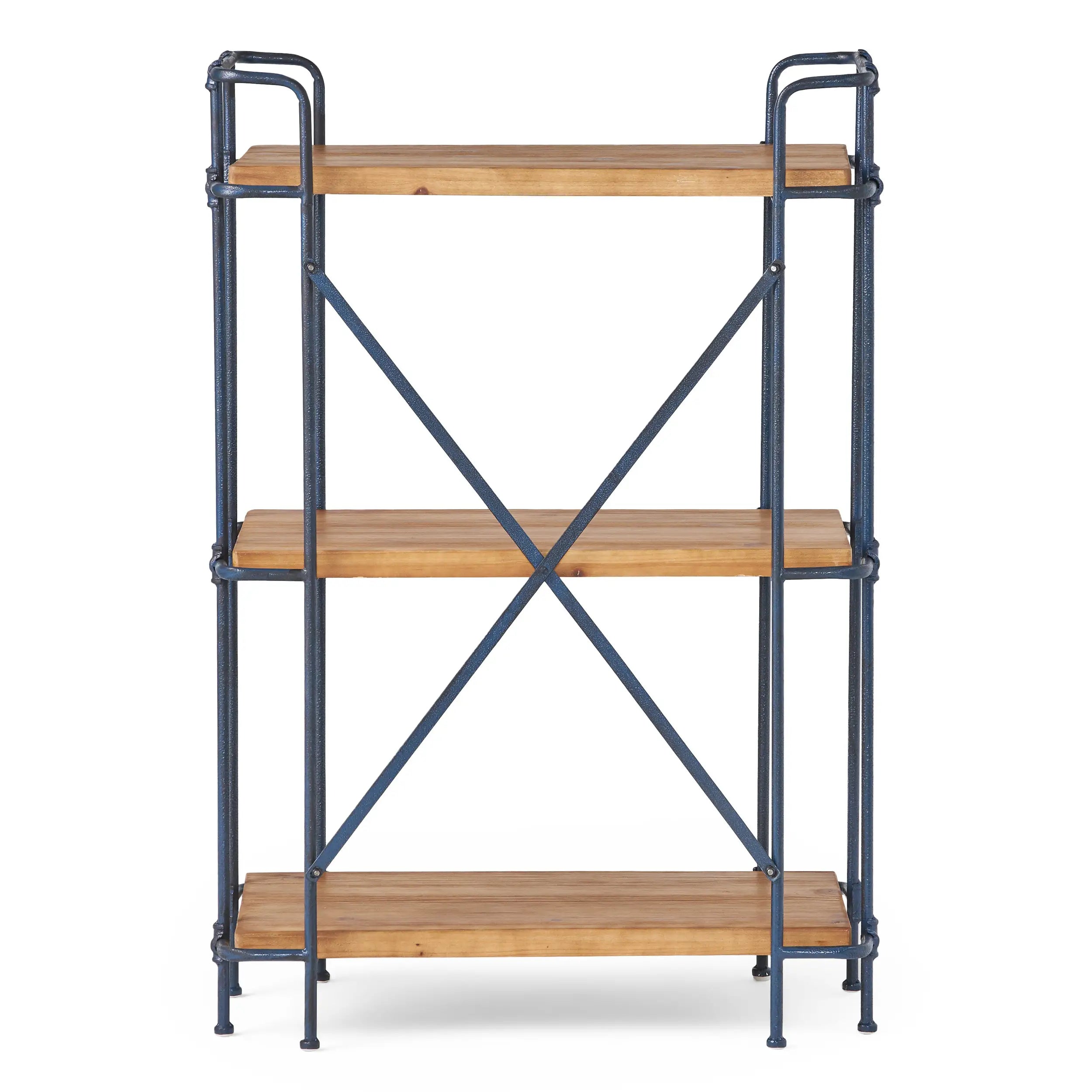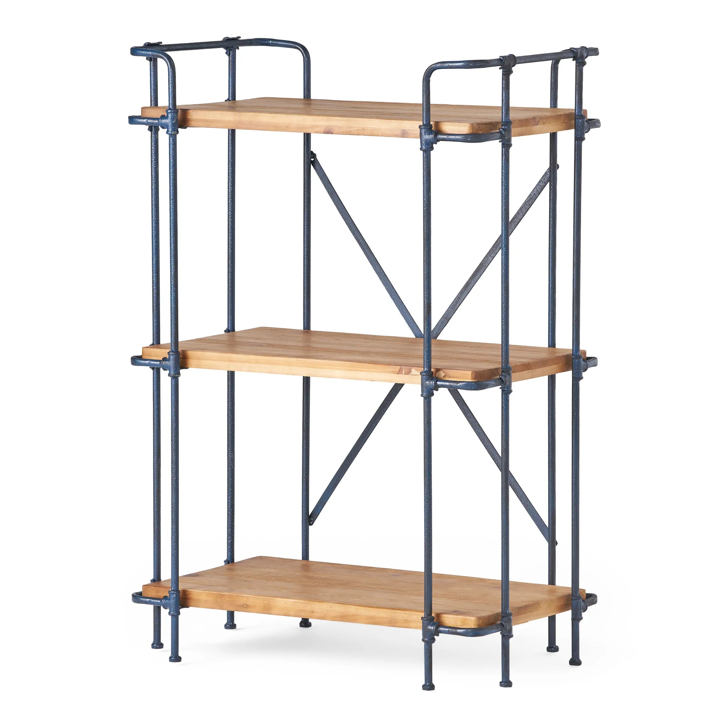 Industrial 3-Shelf Iron Frame Firwood Bookshelf - Wood Brown