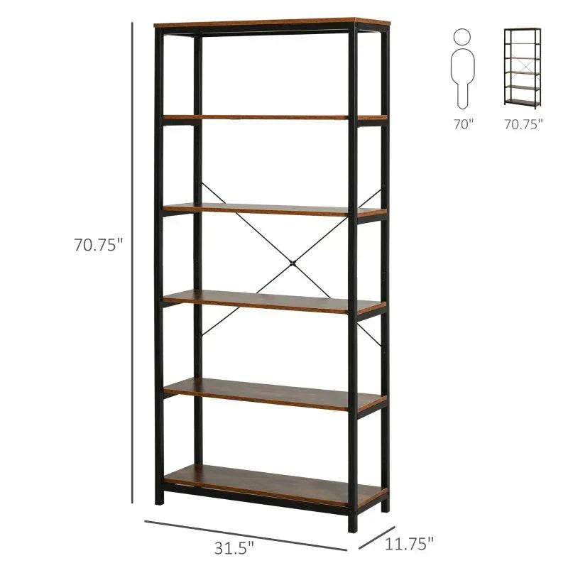 Industrial 6-Shelf Bookshelf - Wood Brown