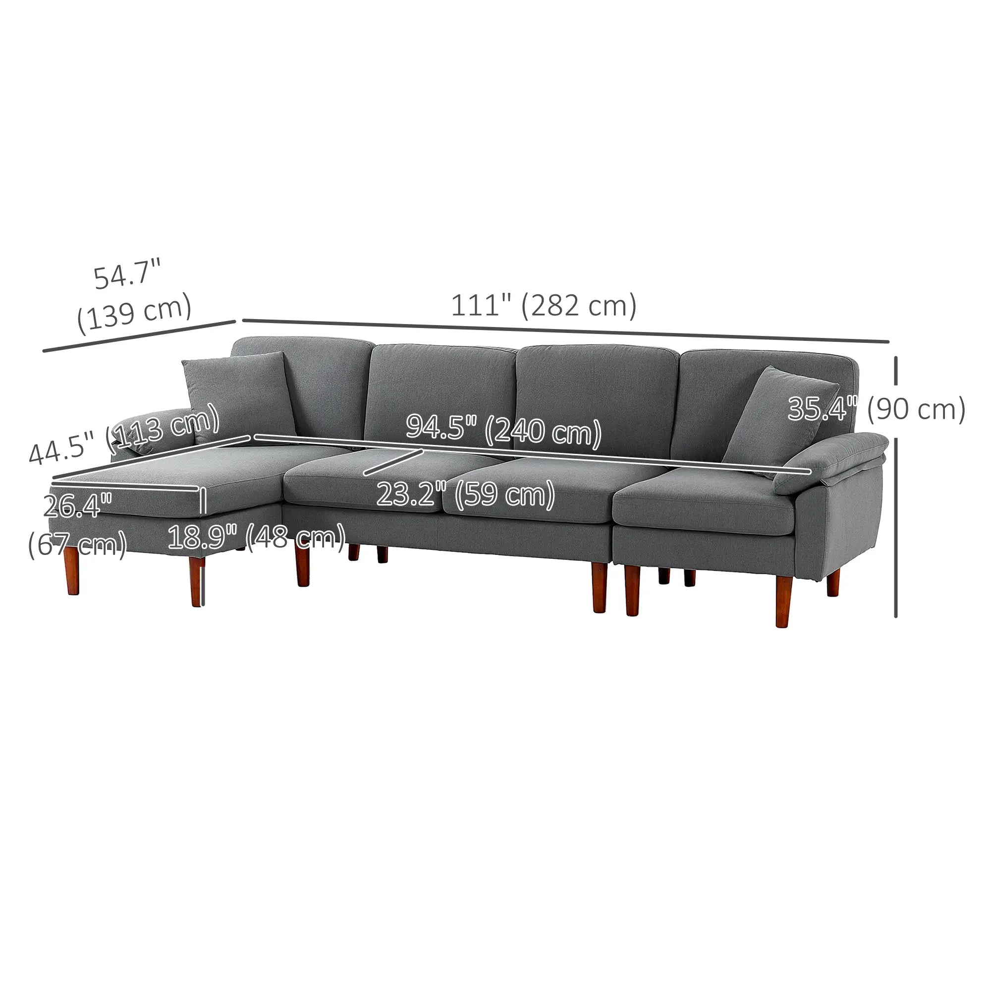 The L-Shaped Sectional Sofa with Changeable Chaise Lounge brings comfort and flexibility to your living room with its versatile layout and supportive construction. Designed with a reversible chaise lounge, this sectional easily adapts to your room’s layout, making it ideal for smaller or multi-use spaces. Breathable linen-feel fabric covers high-density foam seat cushions with built-in spring packs, offering a plush yet resilient seating experience. Overstuffed back cushions, two matching pillows, and armrest padding add extra comfort and detail. Built on a durable steel frame with beech wood legs, this sectional is made to last. Protective foot pads help safeguard your flooring while completing the solid, well-balanced design.