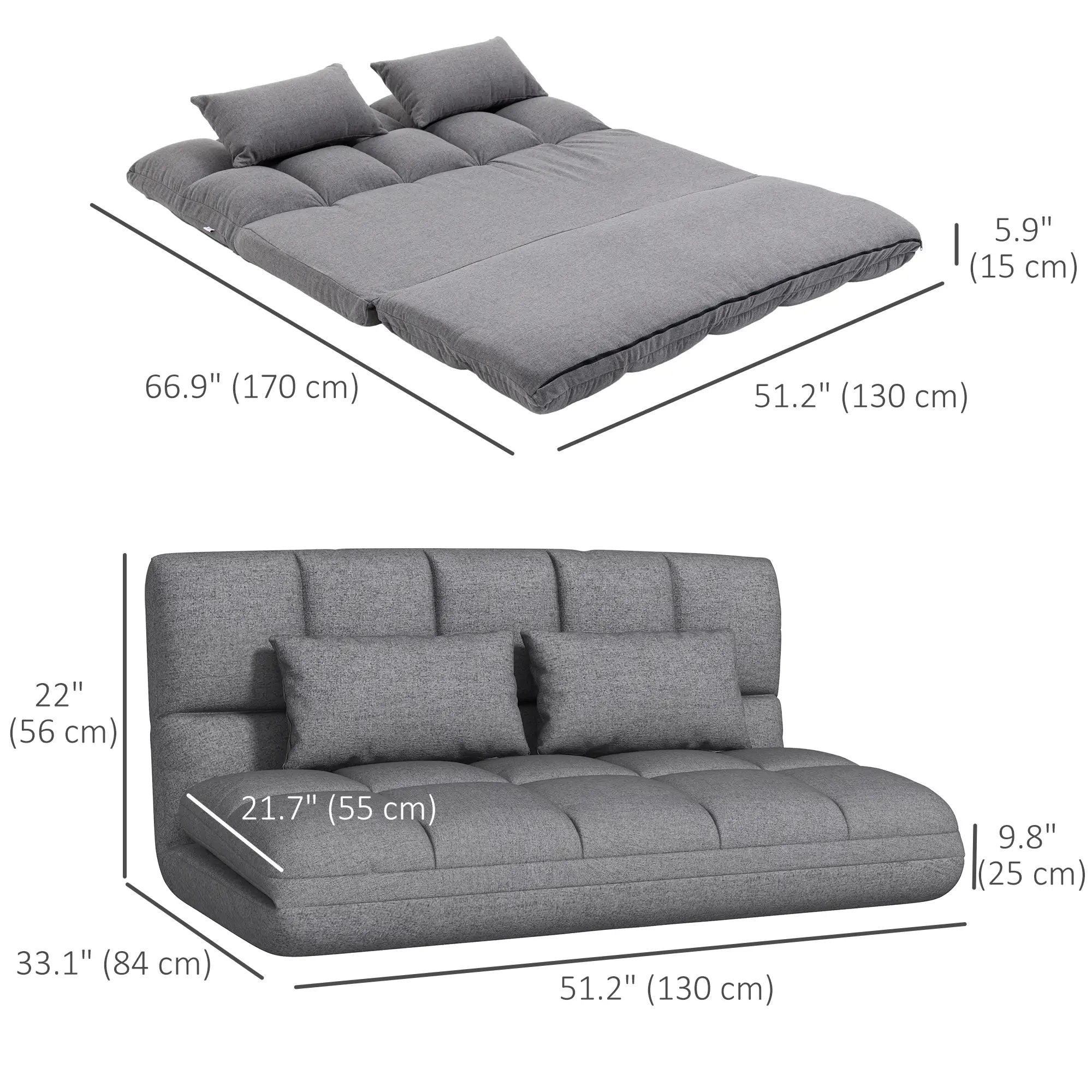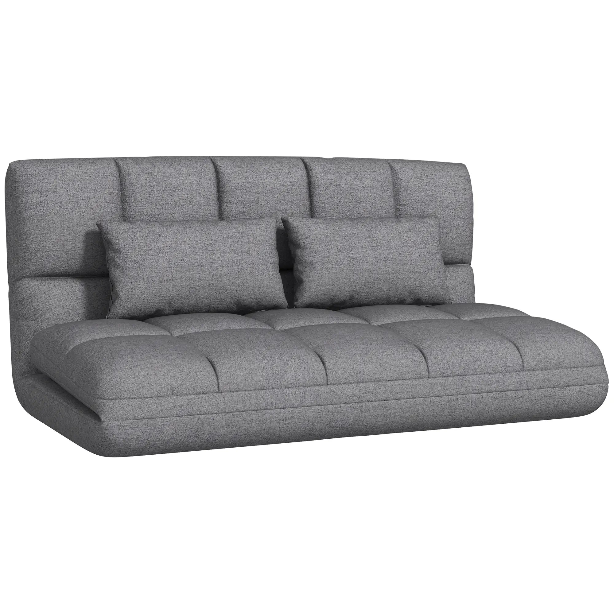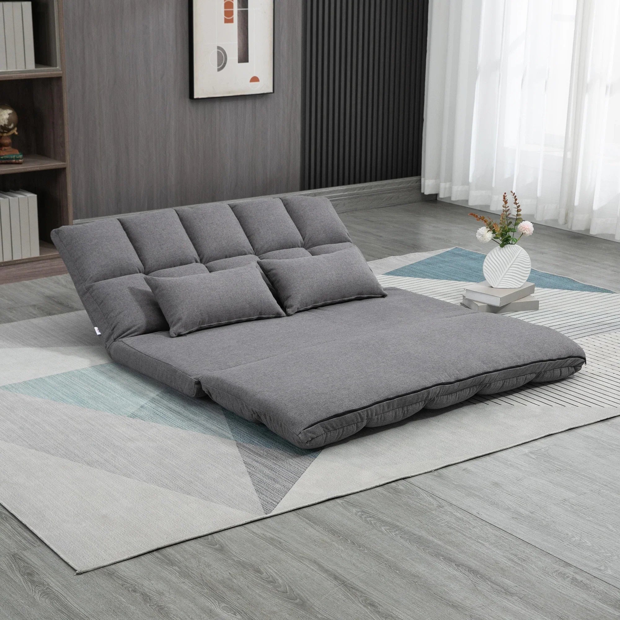 Modern Foldable 2-Seater Floor Sofa Bed – Light Grey
