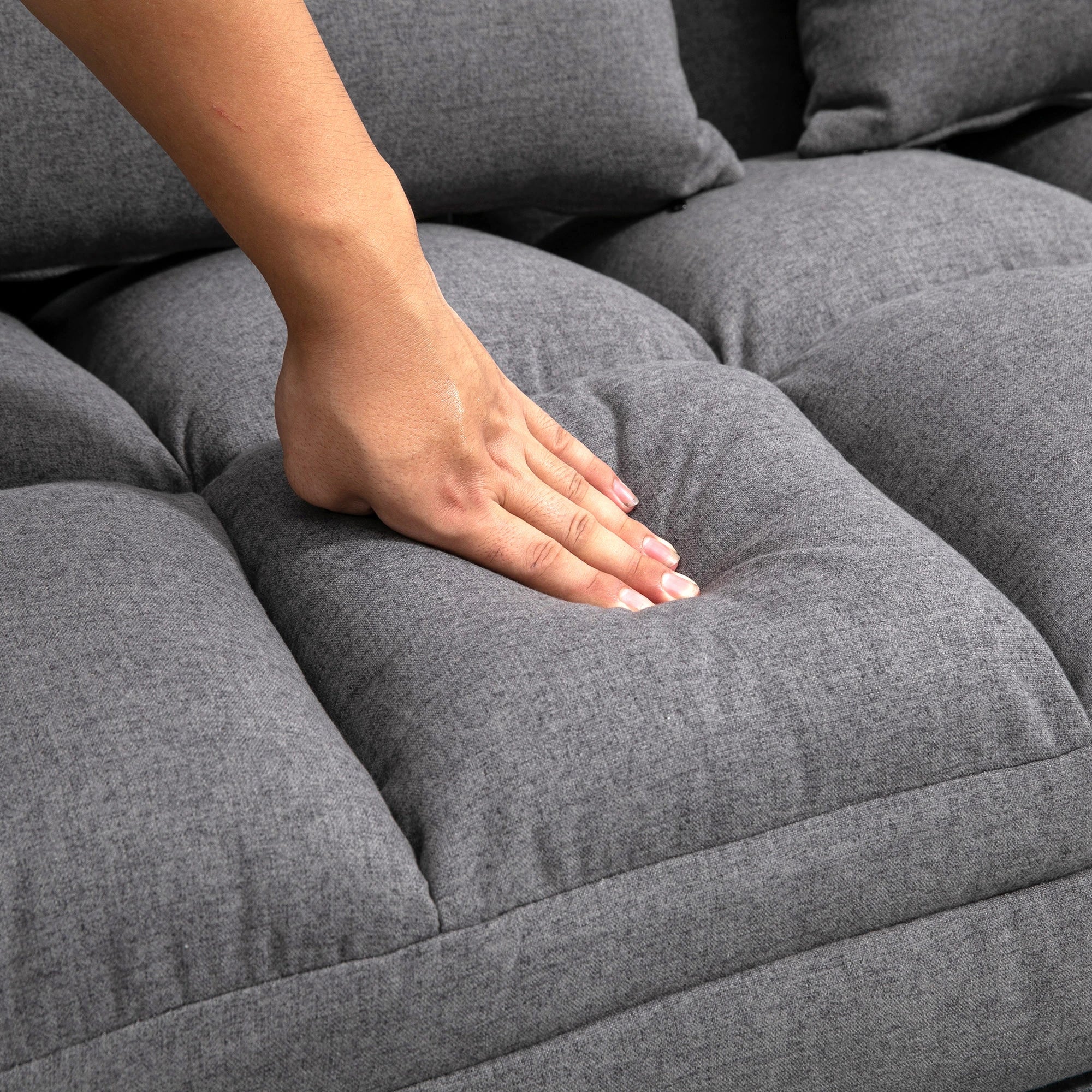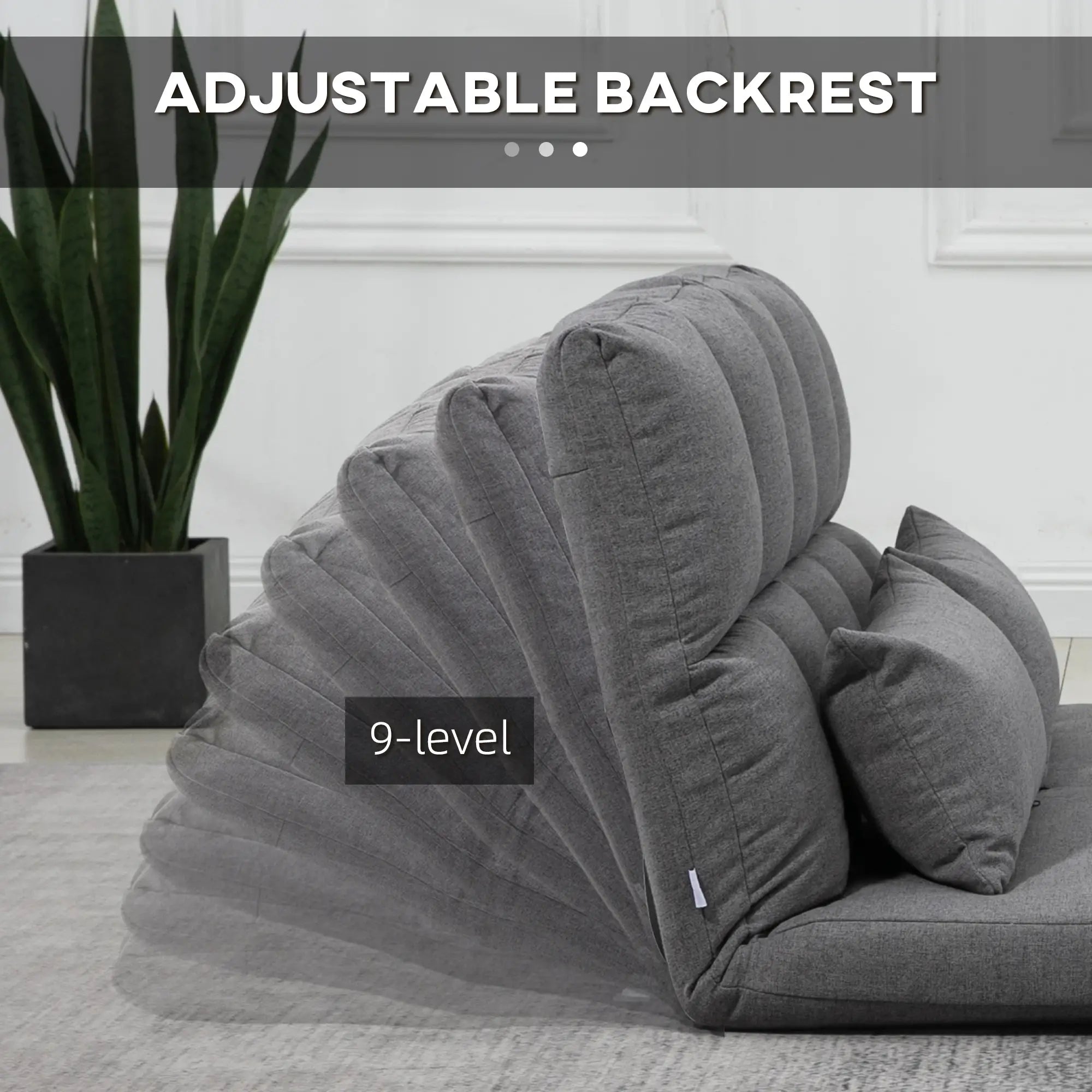 The Modern Foldable 2-Seater Floor Sofa Bed offers the perfect blend of comfort, versatility, and compact design for any living space. With its 3-in-1 functionality, this sofa easily adjusts from an upright floor seat to a reclining lounger or fully flat bed, making it ideal for reading, gaming, or sleeping. Its nine adjustable backrest angles provide custom comfort, while the breathable linen upholstery offers durability and a soft touch. Designed to support two people with ease, the wide seat and deep padding create a relaxing experience, enhanced by two included pillows. Built on a sturdy steel frame, this floor sofa requires no assembly and folds away effortlessly when not in use—ideal for flexible living in modern homes.