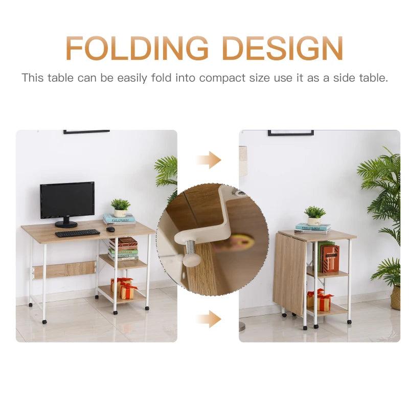 The Folding Computer Desk with Storage Shelves is a smart and stylish solution for compact living and dynamic workspaces. Its foldable design makes it easy to tuck away when not in use, perfect for bedrooms, dorms, or multifunctional rooms where space is limited. Equipped with smooth-rolling wheels, the desk can be effortlessly moved and repositioned for flexible setup. The lower storage shelf offers a convenient place for books, bins, or supplies, while the clean oak finish adds a warm, modern touch. Anti-slip feet enhance stability, and the dust-resistant surface is easy to maintain. Whether you’re working from home, studying, or simply need a versatile writing surface, this desk combines space-saving efficiency with everyday functionality.