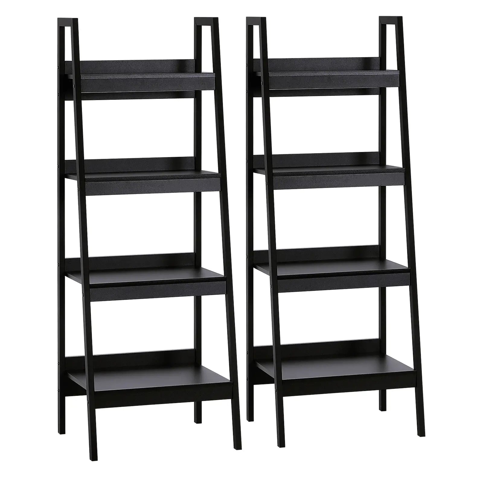 Modern 4-Shelf Leaning Ladder Bookshelf - Set of 2